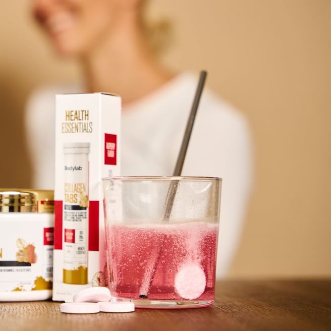Bodylab Collagen Tabs kuuluu Health Essentials -sarjaamme. Se on kehitetty Tanskassa ja suunniteltu tuomaan pientä piristystä ihonhoitorutiiniisi – jotta rutiini ei tunnu rutiinilta.